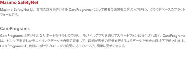 新型コロナウイルス感染症の世界的パンデミックにより、在宅モニタリングソリューションや患者積極的関与型ソリューションに対する需要が国を超えて高まっています。最新のWHOのガイドラインでは、体温や呼吸数、酸素飽和度に基づく、新型コロナウイルス感染症患者のトリアージやモニタリングが検討されています。マシモでは、既存の技術、セキュリティが確保されたクラウドベースのソリューションに適用させて、このような需要の高まりに対応しています。